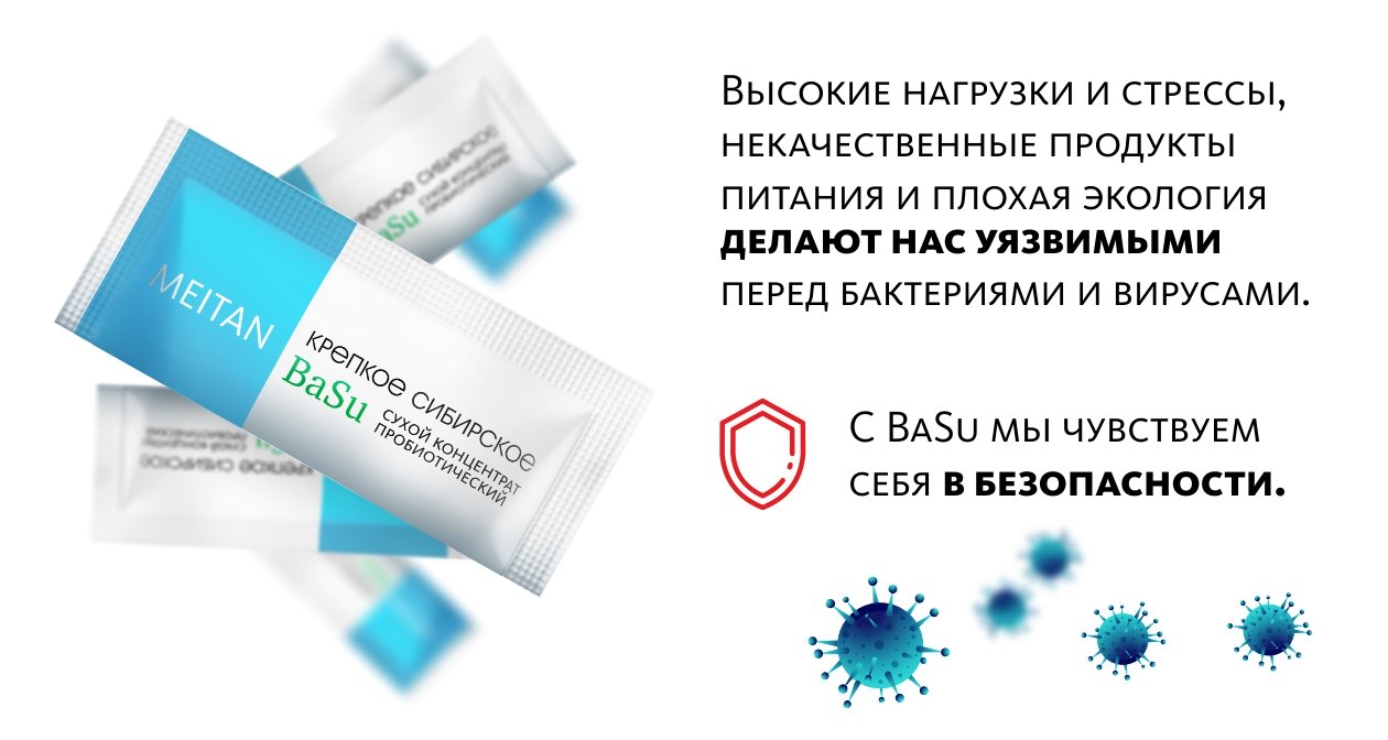 В основе иммунного пробиотика BaSu - природный штамм бактерии Bacillus subtilis (сенная палочка), которая известна своими свойствами восстанавливать микрофлору кишечника и повышать защитные силы организма.